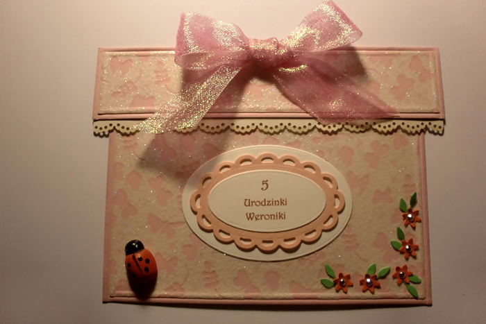 Moja Chrześnica kończy jutro 5 lat więc postanowiłam zrobić coś specjalnie dla niej.Bardzo popularne są karteczki-doniczki,zmodyfikowałam troszkę tą formę karteczki i przerobiłam na kartkę-prezent :)