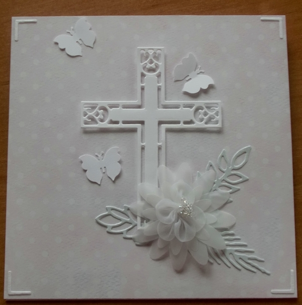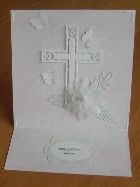 Pomalutku zapoznaje się z tajnikami scrapbookingu i cardmakingu,tym razem spróbowałam czegoś nowego kartka sztalugowa,bardzo prosta delikatna z okazji Chrztu Św.