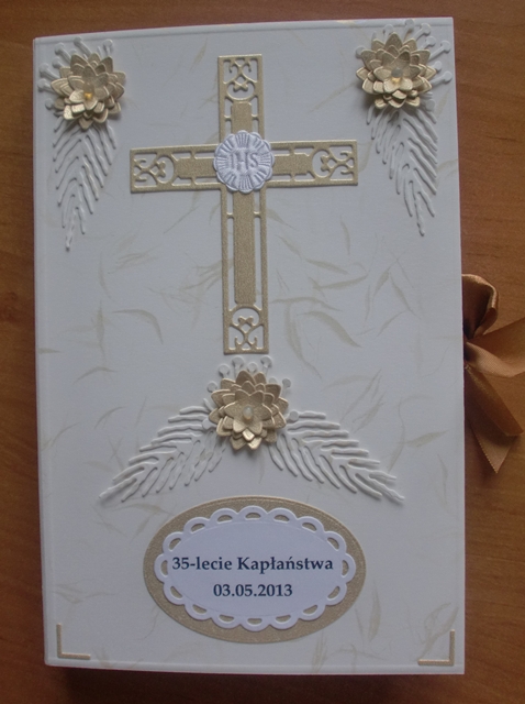 Spotkał mnie zaszczyt zrobienia księgi dla naszego proboszcza na 35-lecie posługi Kapłańskiej,książka prosta  w biało-złotych kolorach :)