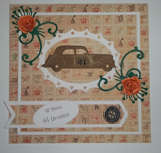 Witam Wszystkich po długiej przerwie,nie wracam jeszcze do scrapowania na pełen etat ;) na chwilę obecną czuję się dobrze więc czasem staram się coś z papieru wyczarować.Dziś kartka na urodziny dla mężczyzny :)