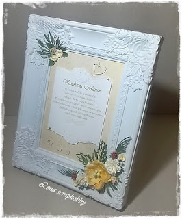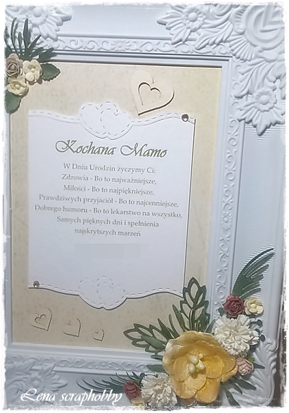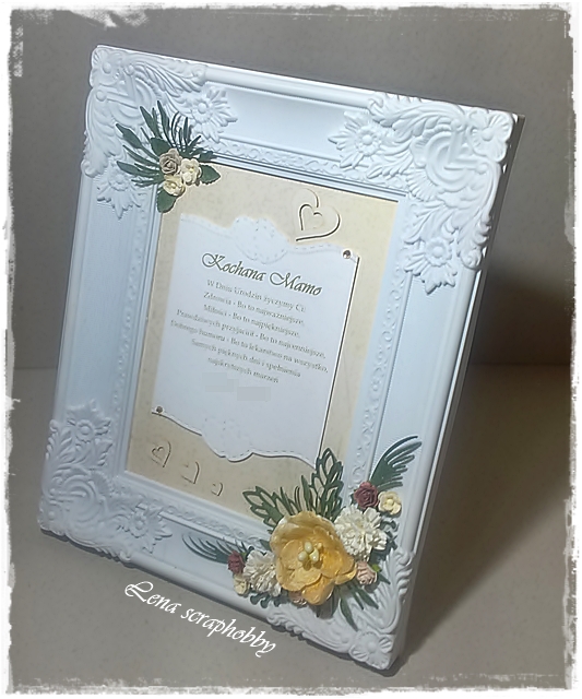 Dziś coś zupełnie innego,ramka ale nie papierowa.Papierowe są tylko kwiatuszki,listki i tekturkowe serduszka :)