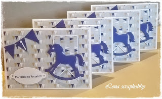 Dziś pokaże Wam zaproszenia na 1 urodziny dla uroczego chłopczyka.Użyłam papieru w bardzo fajny wzorek,który nie potrzebuje zbyt wielu dodatków,bo sam w sobie jest bardzo ozdobny:) całości dopełnia konik na biegunach z wykrojnika Marianne D.
